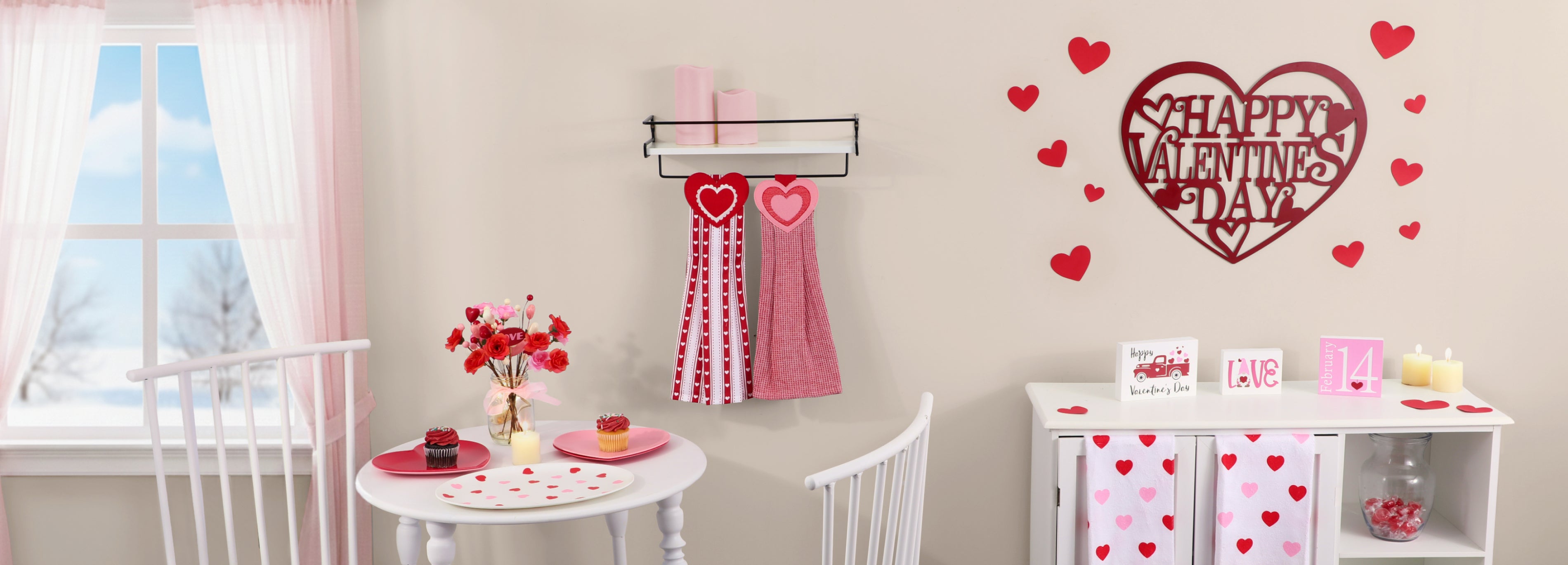 Valentine's Day Kitchen Tie Towels Hearts Set of 2