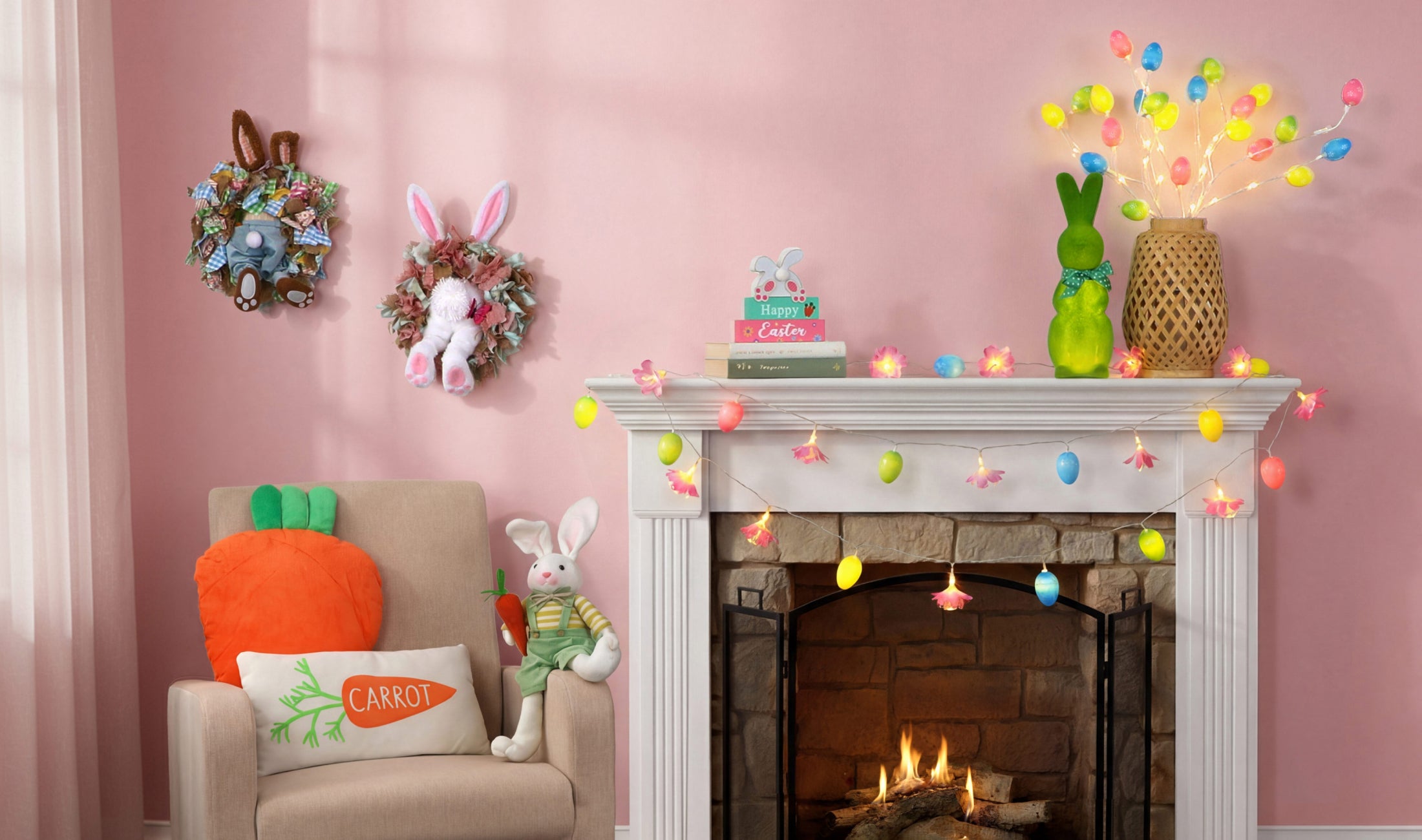 Easter Country Bunnies, Decorative Carrot Garland, or Carrot Wreath