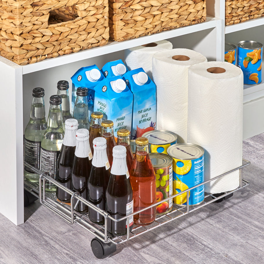 Storage Bin with Handle and Rolling Wheels for Kitchen Organization Plastic